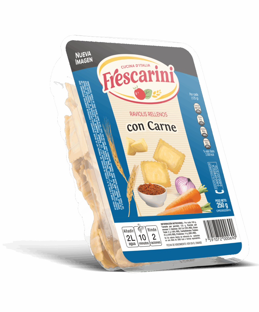Unos buenos raviolis rellenos con carne son simplemente irresistibles. En Frescarini™ nos esmeramos para poner esta delicia en tu mesa de la manera más rápida y práctica posible. ¡Y junto a cualquiera de nuestras salsas para pastas tendrás la pareja perfecta!